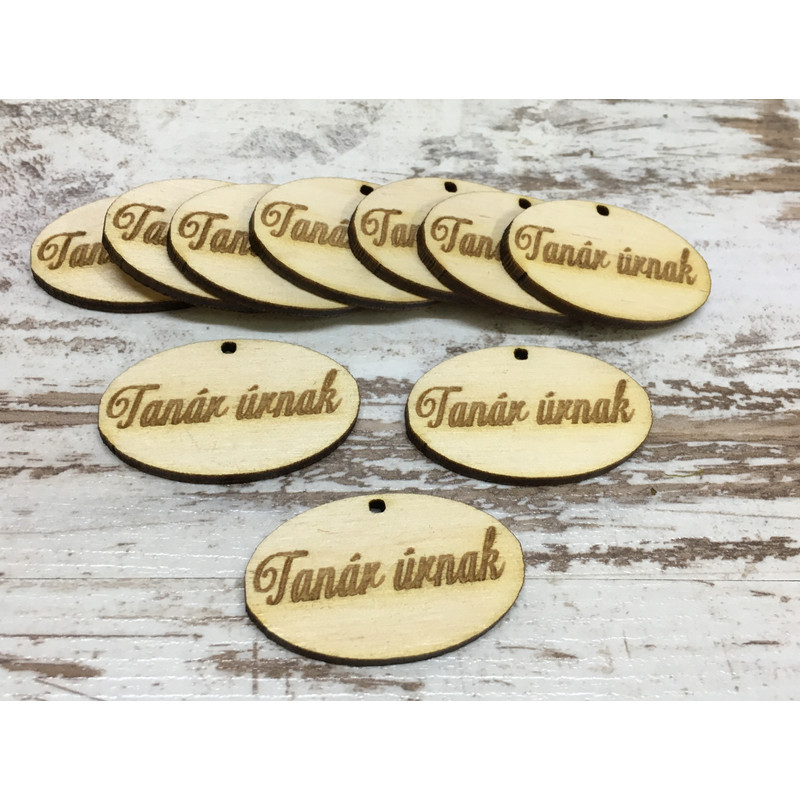 Natúr fa - "Tanár úrnak" ovál tábla 2,5x4cm 10db/csomag