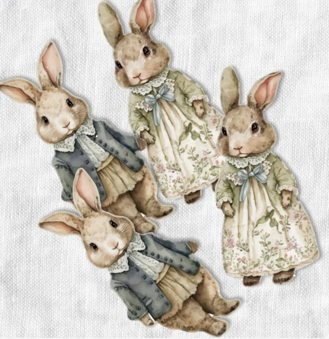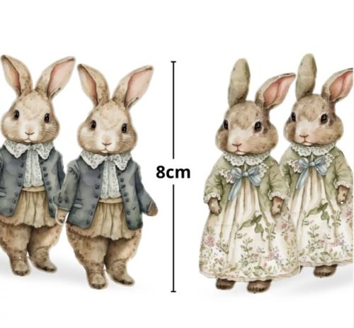 Nyomott díszkarton - Klasszikus nyuszipár 3x8 cm