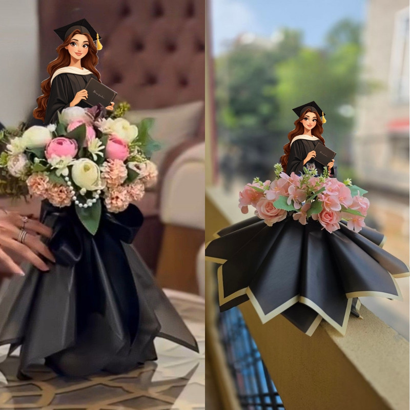 Nyomtatott dekorkarton - Beszúrható ballagási dekor - lány barna