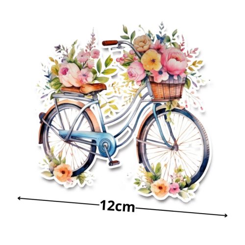 Élénk színekben pompázó biciklit ábrázoló tábla, amely tökéletes kiegészítője lehet koszorúknak, de bármilyen kreatív dekorációs projektben is remekül mutat.