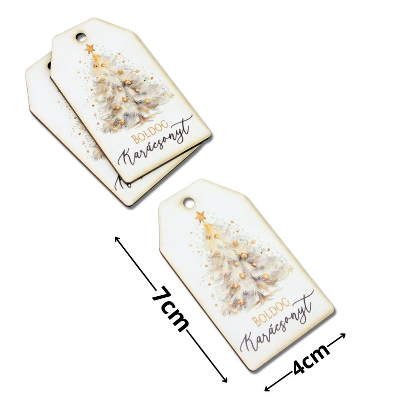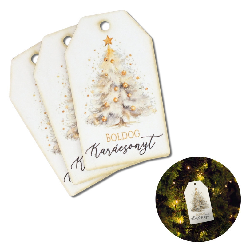 Nyomtatott dekorkarton - Boldog karácsonyt arany fenyő táblák 3db/cs
