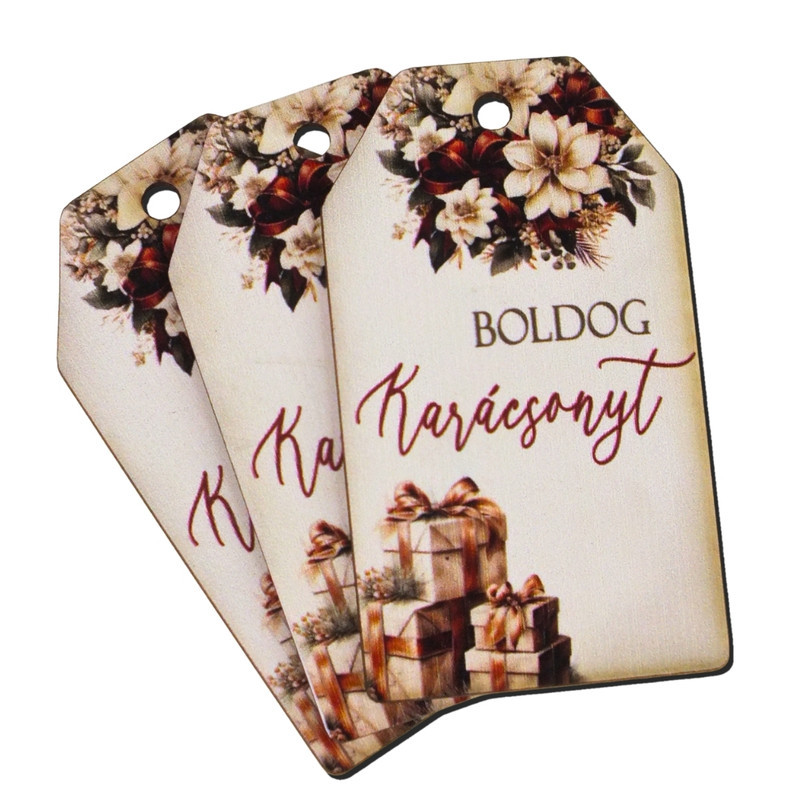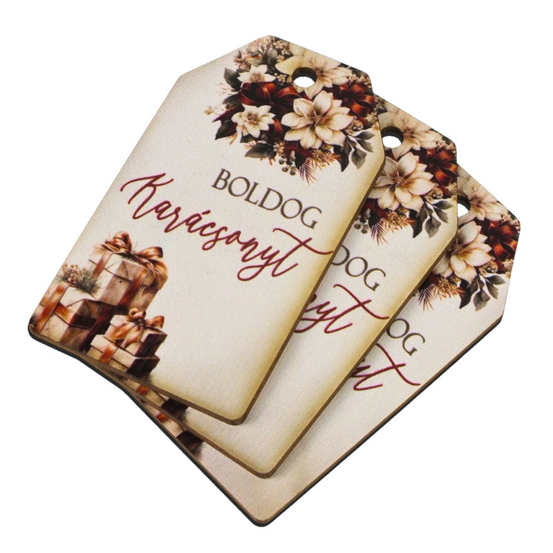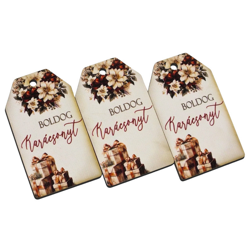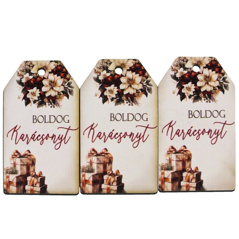 Nyomtatott dekorkarton - Boldog karácsonyt krém-barna táblák 3db/cs