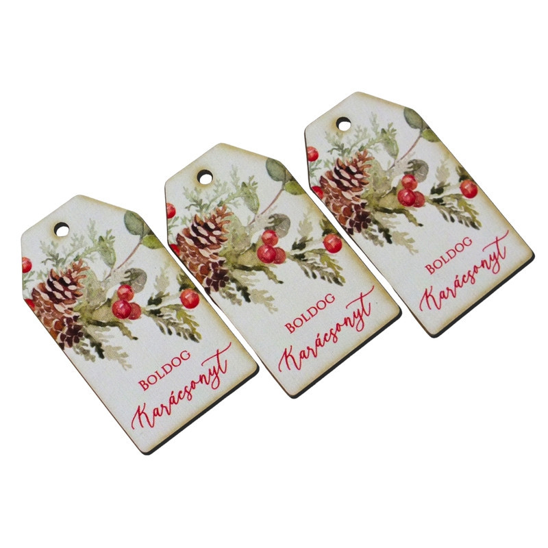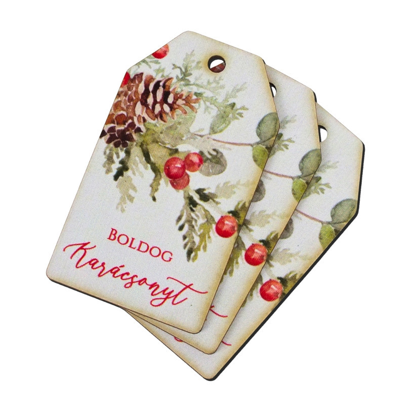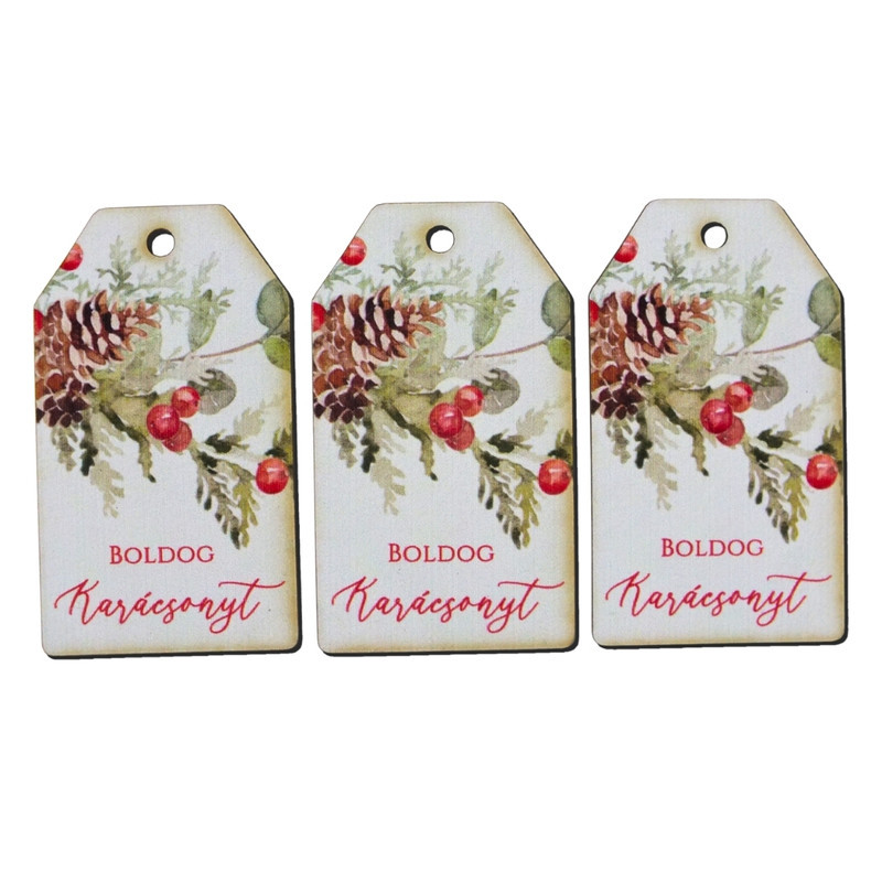 Nyomtatott dekorkarton - Boldog karácsonyt piros-zöld táblák 3db/cs