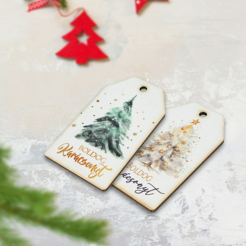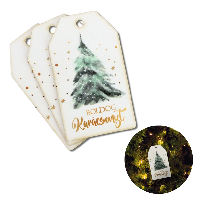Nyomtatott dekorkarton - Boldog karácsonyt zöld fenyő táblák 3db/cs