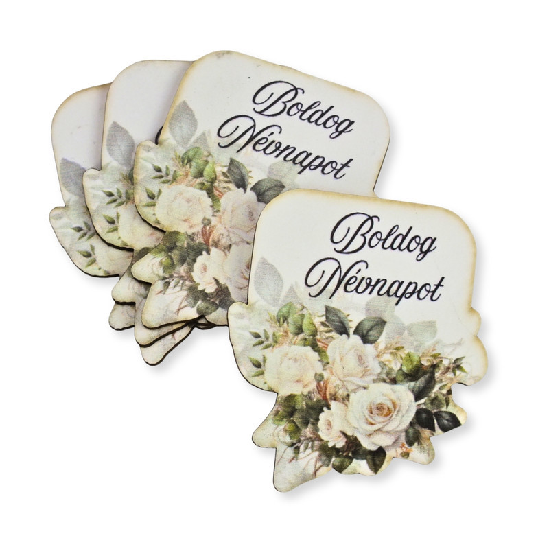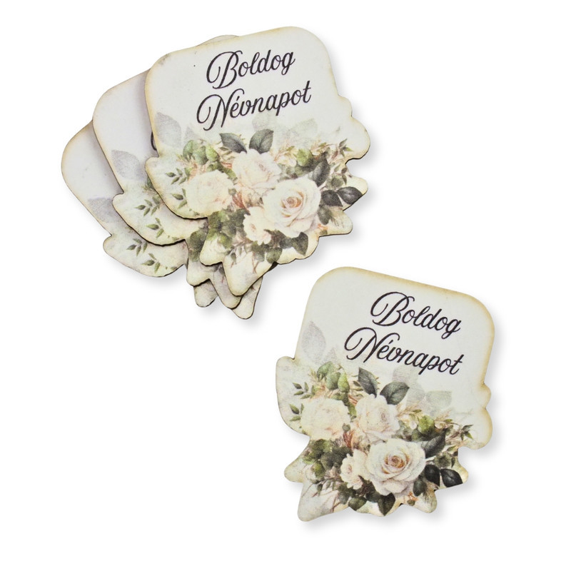 Nyomtatott dekorkarton - Boldog névnapot virágos tábla - fehér 4db/csomag
