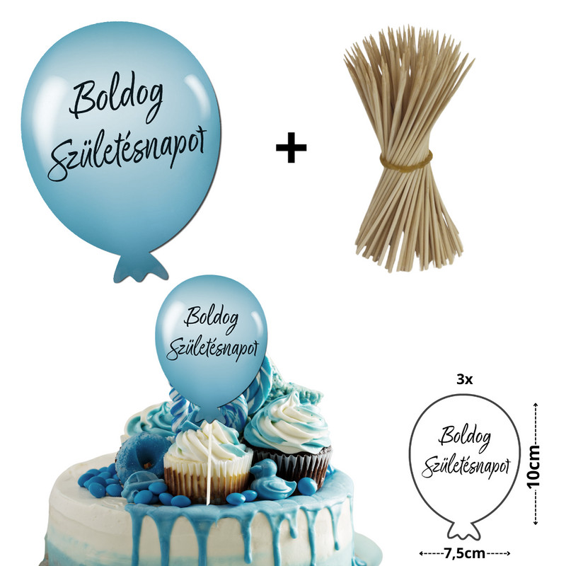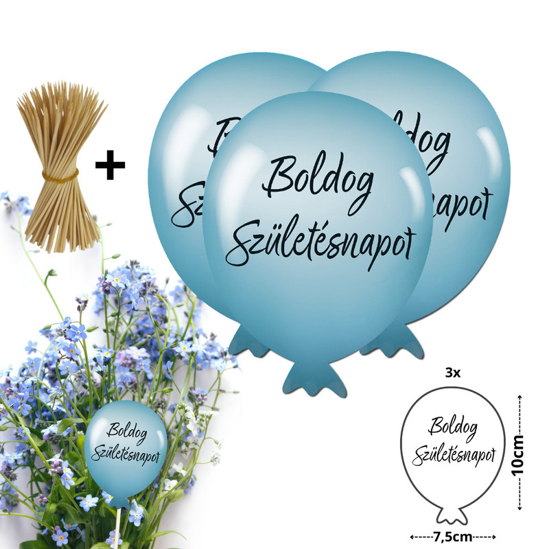 Nyomtatott dekorkarton - Boldog születésnapot lufi - pasztell kék 3db/csomag