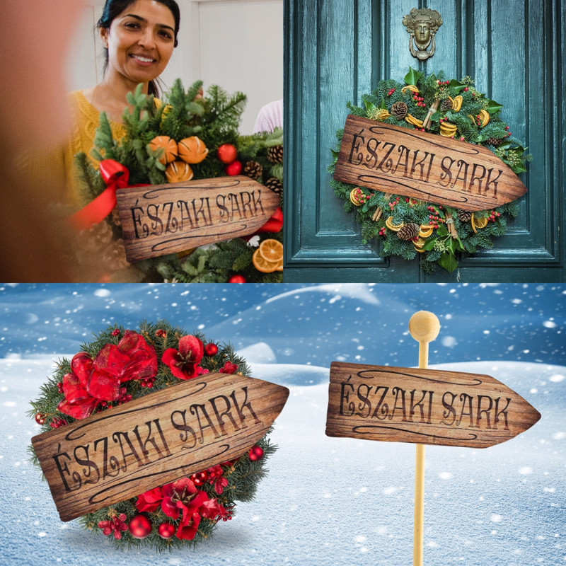 Nyomtatott dekorkarton - Északi sark útjelző 26cm