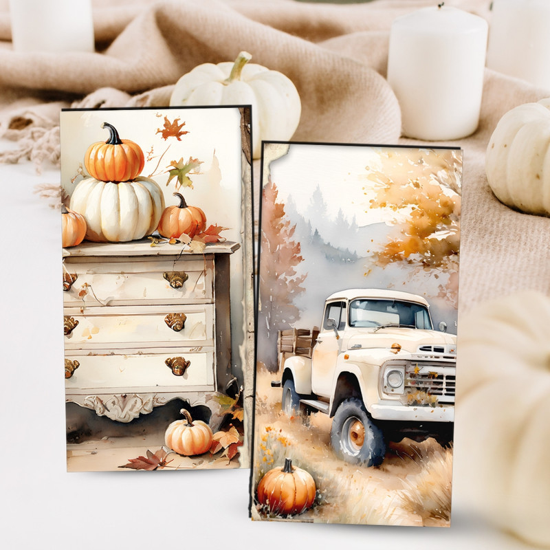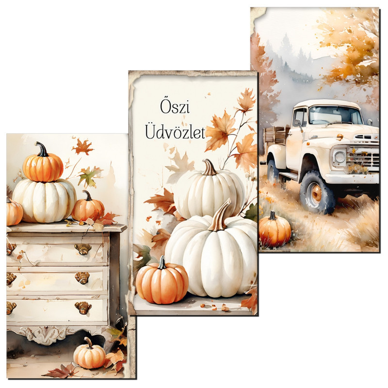Nyomtatott dekorkarton - Fehér-narancs tök táblák 3db/csomag