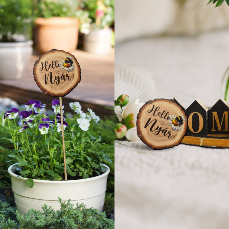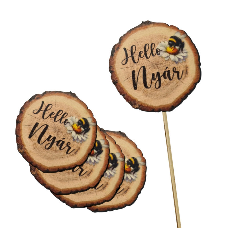 Nyomtatott dekorkarton - Hello Nyár faszelet méhecskés 5db/csomag