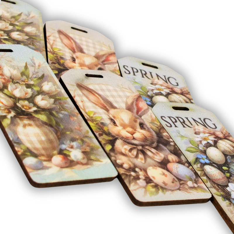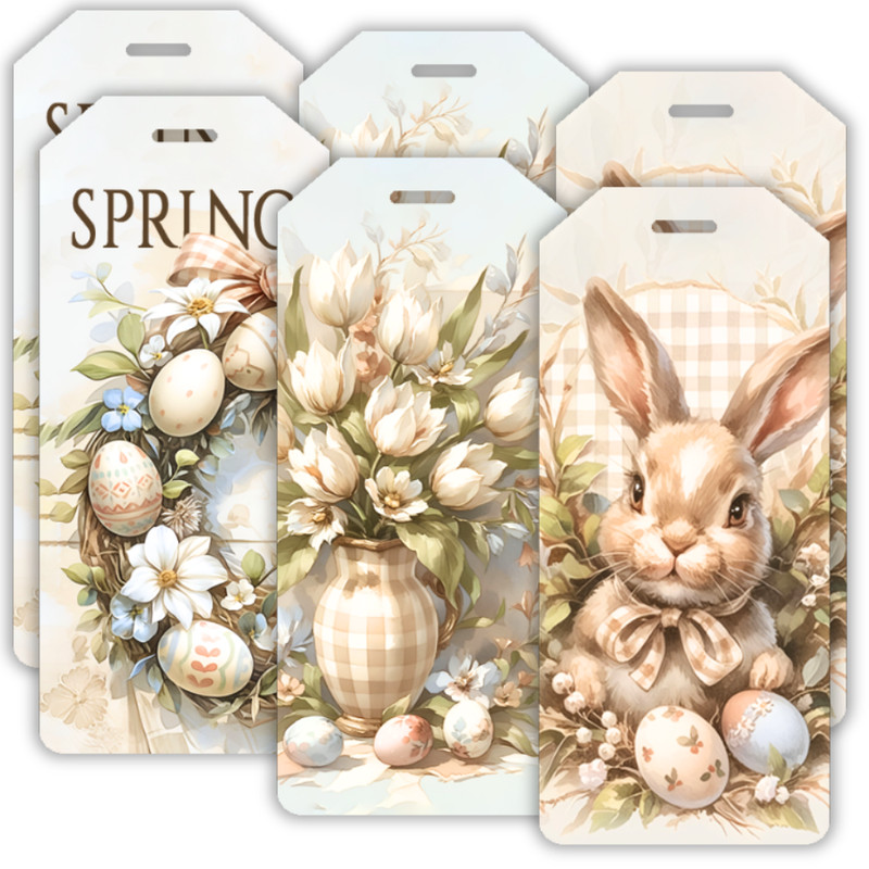 Ez a nyomtatott dekorkartonból készült húsvéti pasztell biléta szett 6 darabos kiszerelésben érhető el, vintage stílusú mintákkal. Finom színei és klasszikus megjelenése miatt kiválóan használható tavaszi és húsvéti dekorációkhoz, koszorúkhoz, ajándékcsomagoláshoz vagy egyedi díszítésekhez. Könnyű kialakításának köszönhetően sokoldalúan felhasználható - legyél kreatív, és alkoss harmonikus ünnepi dekorációkat.