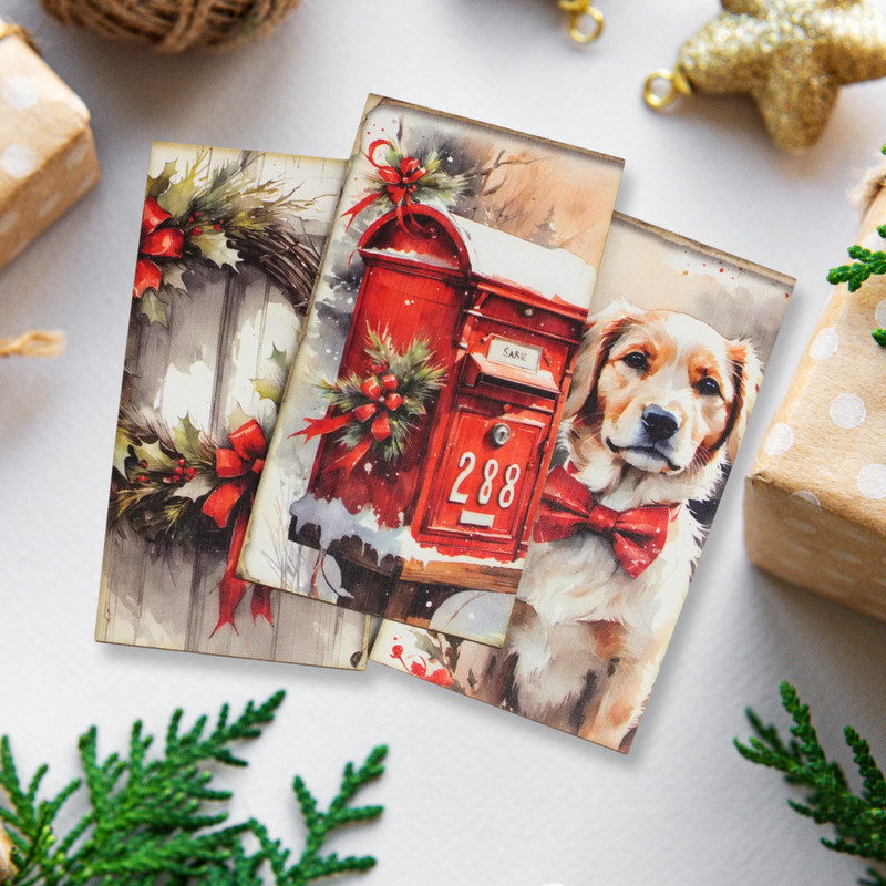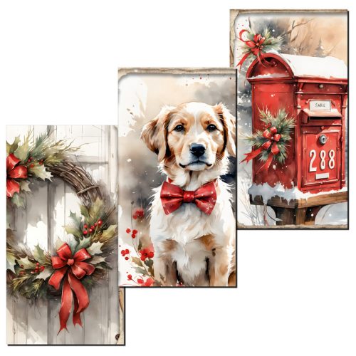 Nyomtatott dekorkarton - Karácsonyi piros téma táblák 3db/csomag