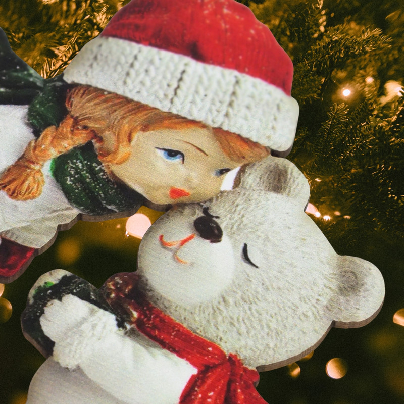Nyomtatott dekorkarton - Kislány macival 10x13cm