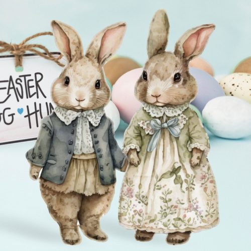 Nyomtatott dekorkarton - Klasszik nyuszi pár 18cm 2db/csomag