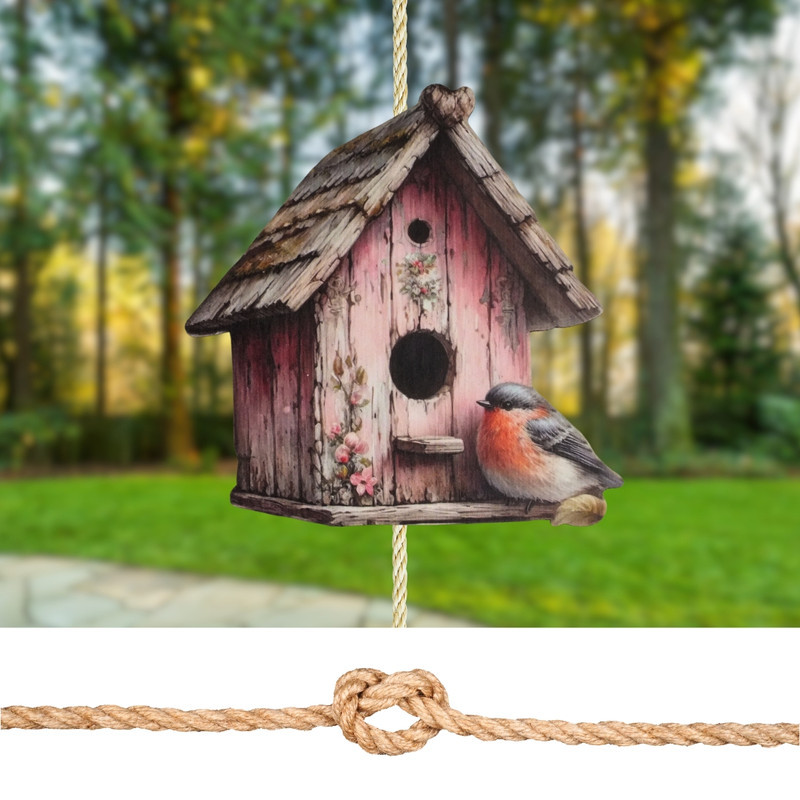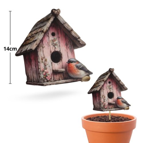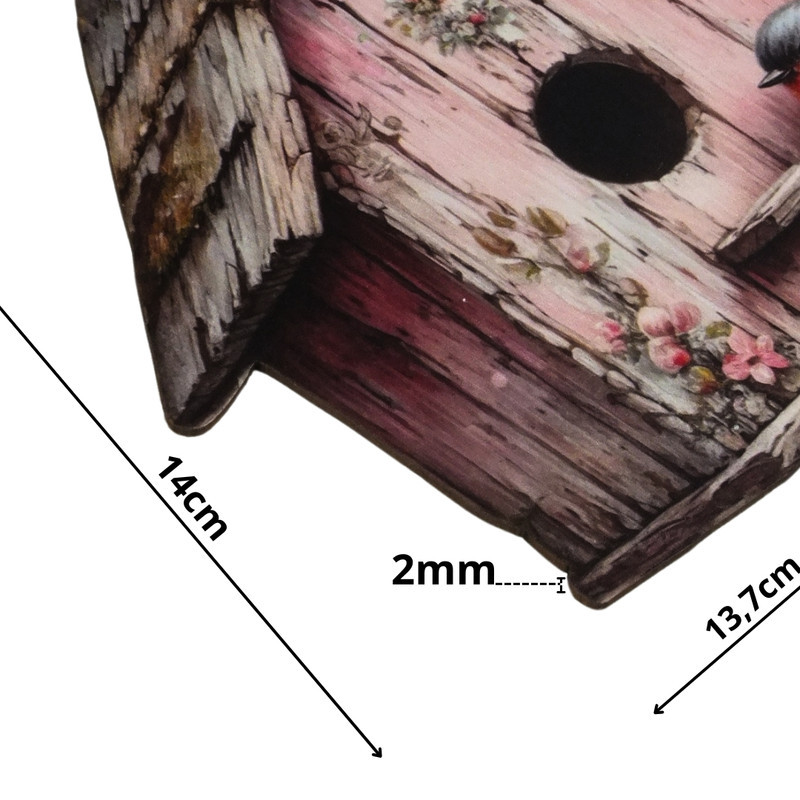 Nyomtatott dekorkarton - Madáretető rózsaszín 14x13,7cm