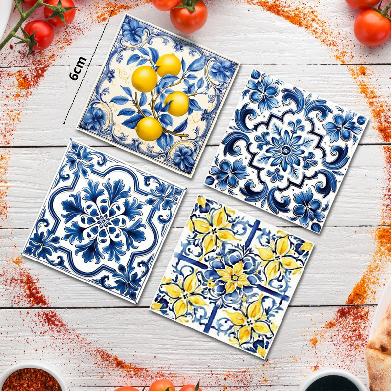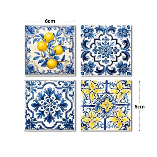 Nyomtatott dekorkarton - Mediterrán csempe minta 6x6cm 4db/csomag