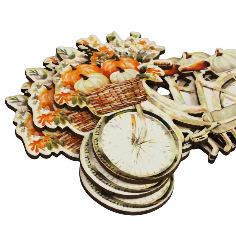 Nyomtatott dekorkarton - Őszi bicikli 8x7,5cm 3db/csomag