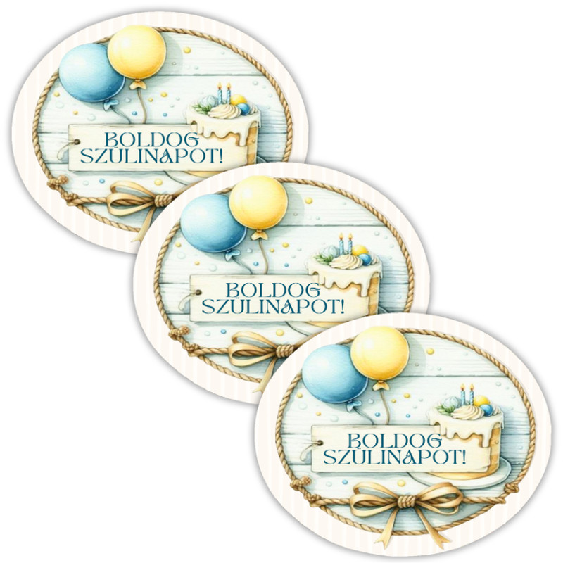 Ez a nyomtatott dekorkarton csomag három darab ovál alakú szülinapi táblát tartalmaz. Jól használható születésnapi asztaldíszekhez, ajándékkísérőkhöz, tortadekorációkhoz vagy kreatív ünnepi összeállításokhoz. Könnyű anyaga miatt egyszerűen rögzíthető, és szépen kombinálható más születésnapi dekorációs elemekkel.