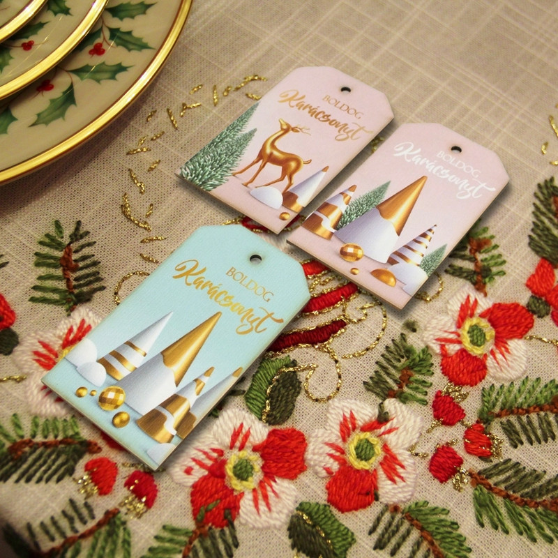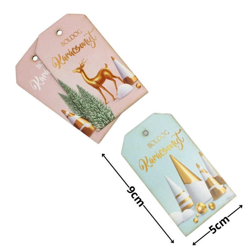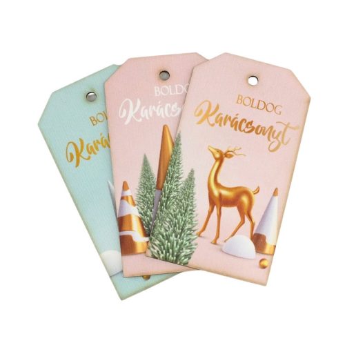 Nyomtatott dekorkarton - Pasztell-arany Boldog karácsonyt biléta 3db/csomag