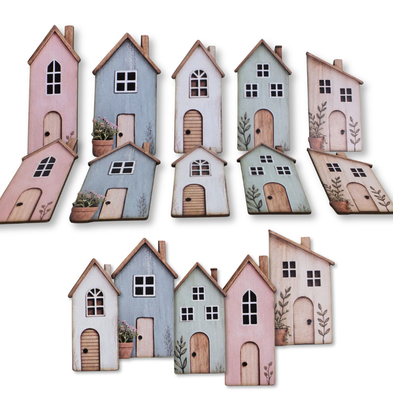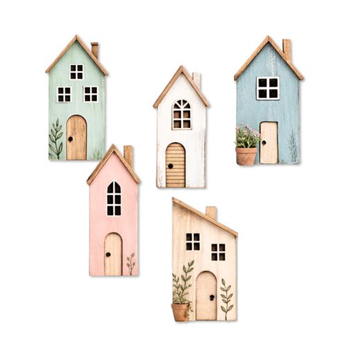 Nyomtatott dekorkarton - Pasztell házikók 5db/csomag