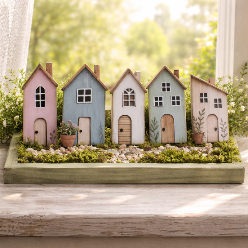 A Nyomtatott dekorkarton - Pasztell házikók 5db/csomag saját gyártású dekorációs szett, amely finom színeivel harmonikus és egységes megjelenést biztosít. A különböző mintájú házikók tökéletesen kombinálhatók egymással, így több dekorációban is visszaköszönhet ugyanaz a stílus. Ideális választás koszorúkhoz, virágdíszekhez, csokrokhoz és kreatív dekorációkhoz. Könnyen beilleszthető különböző kompozíciókba, és segít egységes, letisztult összhatást kialakítani. Saját gyártású termék, amely egyedi és igényes megjelenést ad minden alkotáshoz.