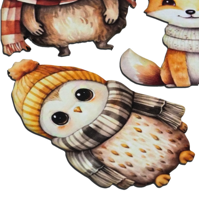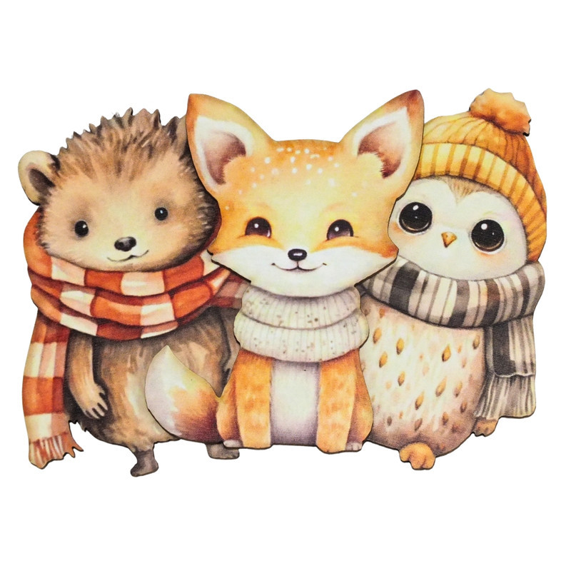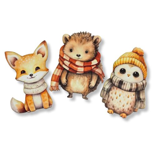 Nyomtatott dekorkarton - Rajzos őszi állatok ~7-8cm 3db/csomag