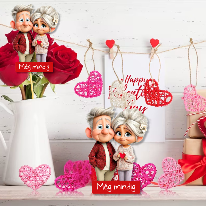 Saját gyártású, nyomtatott dekorkarton szenior szerelmes pár mintával, 2 db/csomag kiszerelésben. A felirat: „még mindig” - mert a szerelem nem kor kérdése. Tökéletes választás romantikus dekorációkhoz, évfordulókhoz, ajándékcsomagoláshoz, asztaldíszekhez vagy meghitt hangulatú kreatív projektekhez. Kedves, mosolyt csaló minta, ami egyszerre megható és szerethető, és szépen kombinálható más dekorelemekkel.