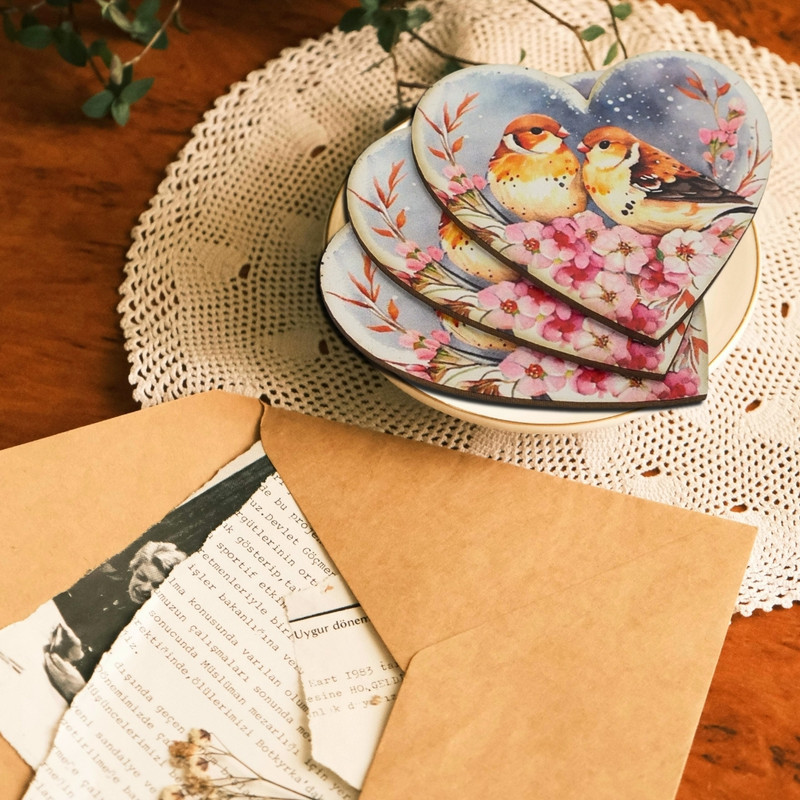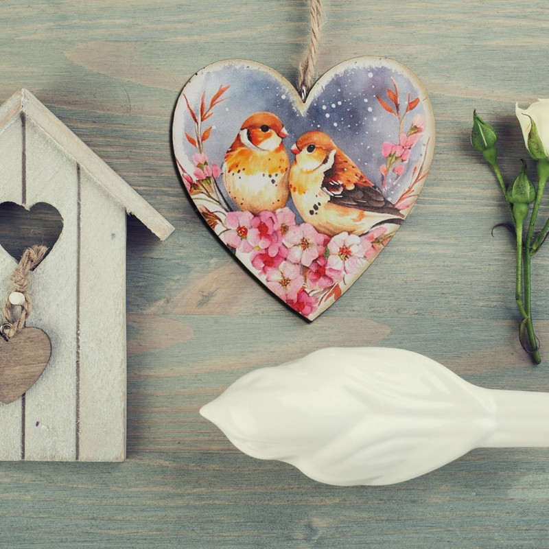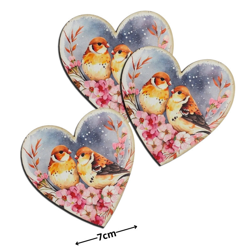 Nyomtatott dekorkarton - Szív táblák 3db/cs Madárkák virágon