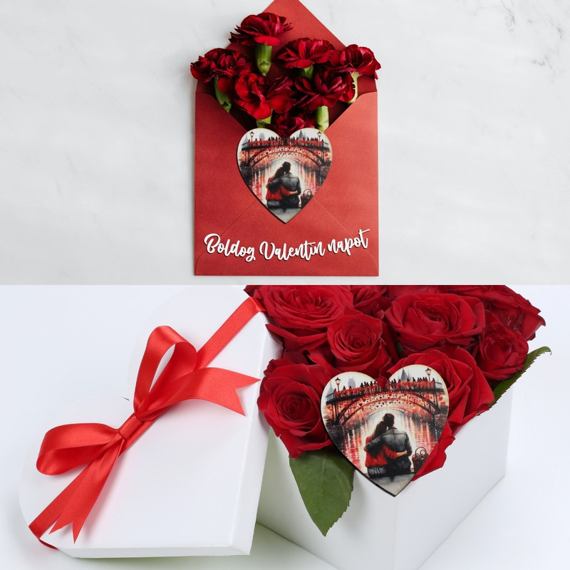 Nyomtatott dekorkarton - Szív táblák 3db/cs Szerelmes híd