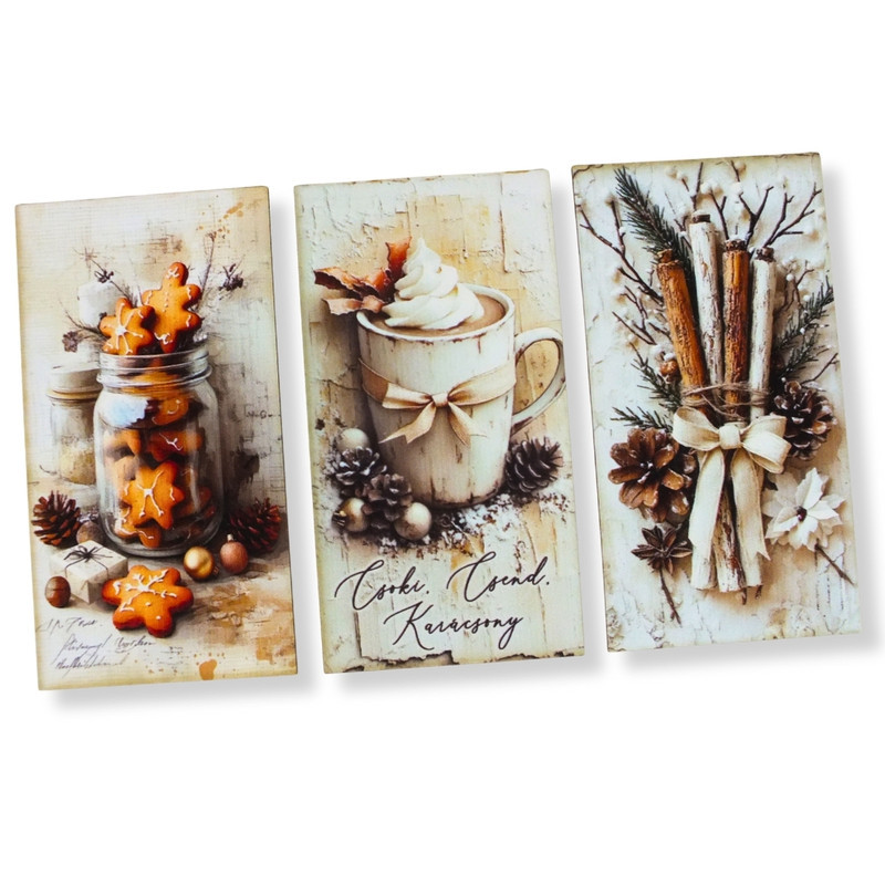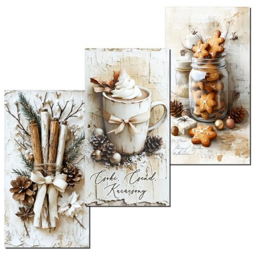 Nyomtatott dekorkarton - Vintage fehér téma táblák 3db/csomag