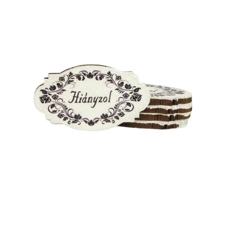 Különleges eljárással készített, lézervágott natúr fára nyomtatott egyedi táblák. Előnyös lehet mindenkinek, aki szereti a kézzel alkotott készítményeket valamivel kihangsúlyozni. Megjelenésével a dekorációt kiemeli a hétköznapi díszek közül.