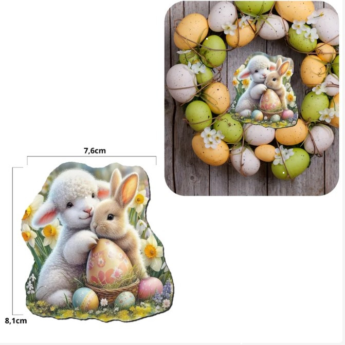 Nyomtatott díszkarton - Bárány nyuszival 8,1x7,6 cm