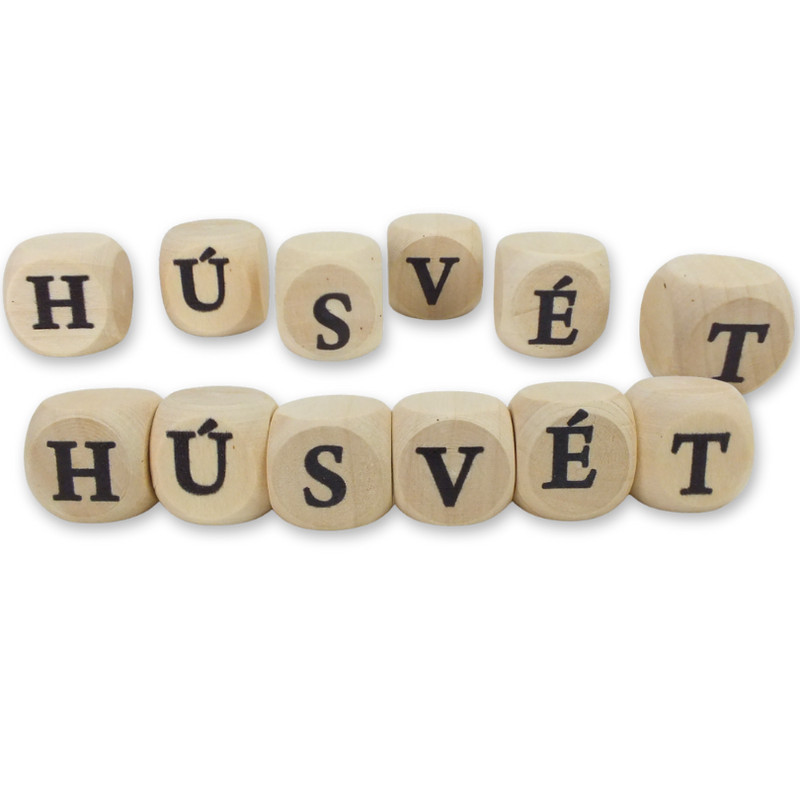Nyomtatott fa dobókocka natúr - HÚSVÉT felirattal 2szett/csomag