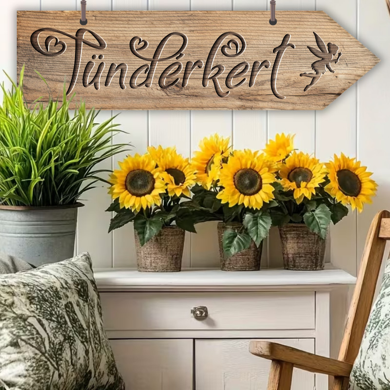 Ez a nyomtatott fa nyíl „Tündérkert” felirattal egy igazán hangulatos dekorációs elem, amely 30 cm-es méretével jól érvényesül kertben, teraszon vagy beltéri összeállításokban is. Használható iránymutatóként, díszítő elemként vagy tematikus dekoráció részeként. Természetes megjelenése miatt könnyen kombinálható fa, vessző vagy növényi alapú dekorációkkal, és különleges mesés hangulatot teremt.