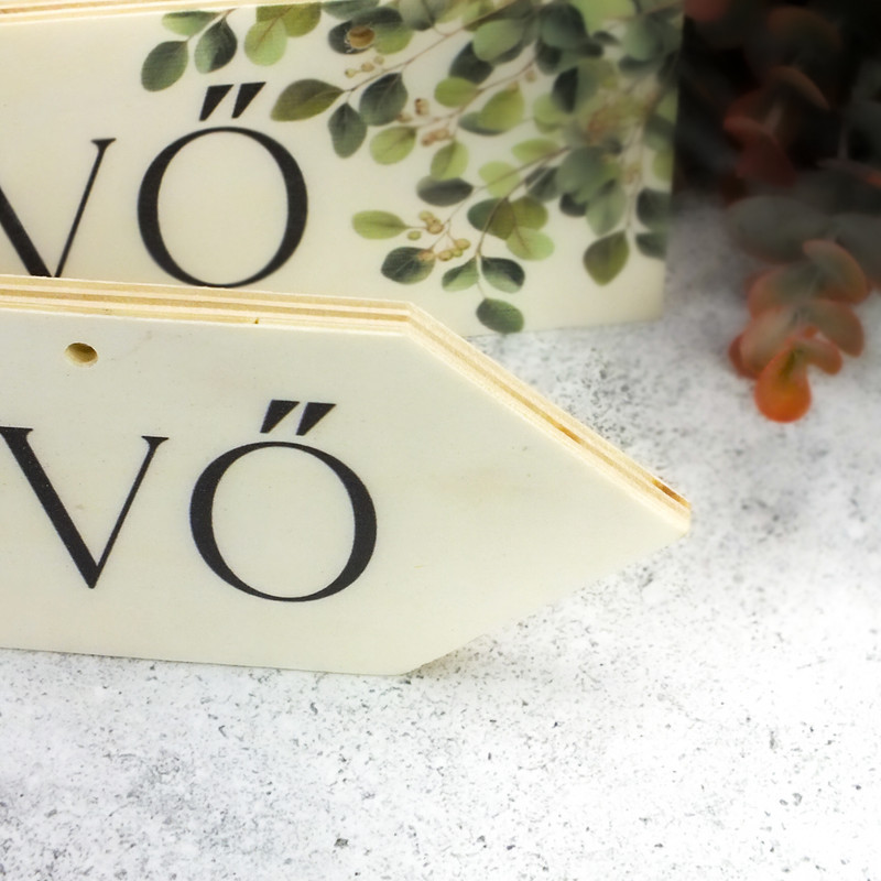 Nyomtatott fa nyíl bal - Esküvő 30cm