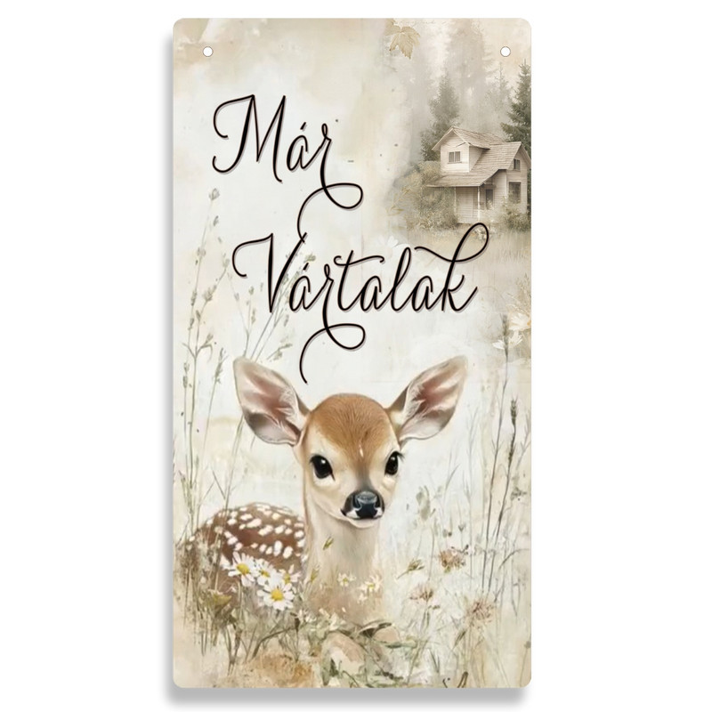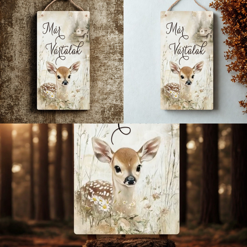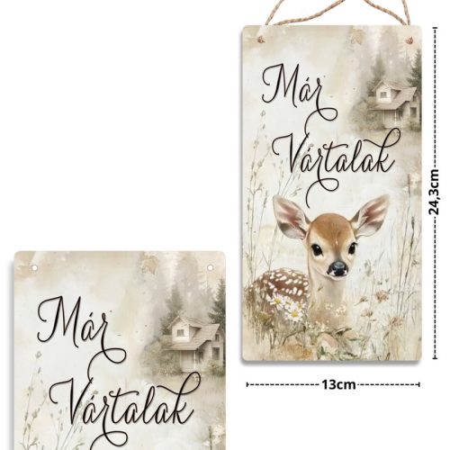 Nyomtatott fa tábla - Erdei állatok- Már vártalak akasztós tábla 13x24,3cm