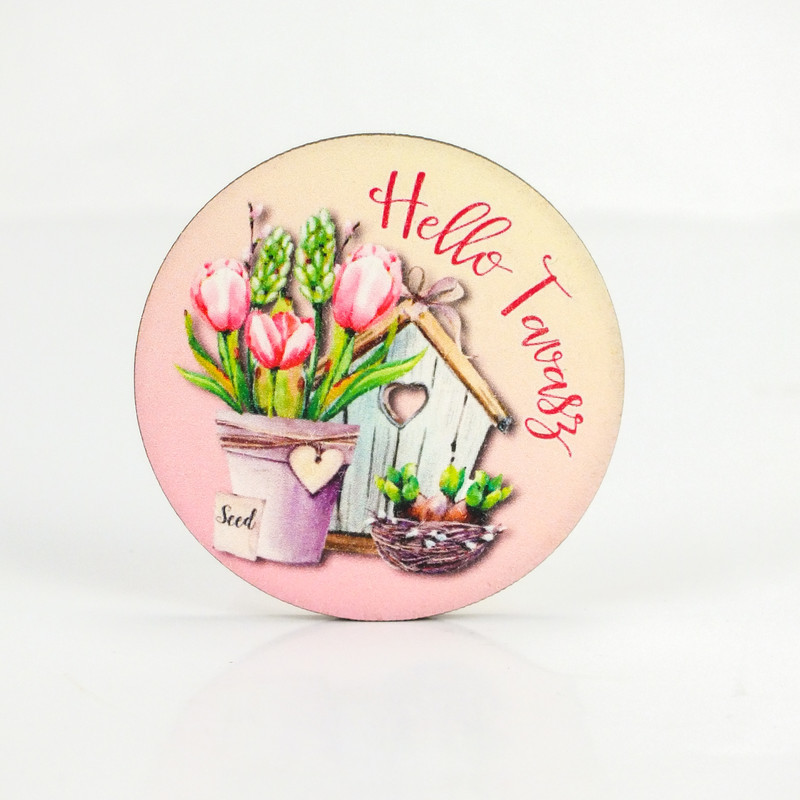Nyomtatott fa tábla - Hello Tavasz - tulipános, kör 1db