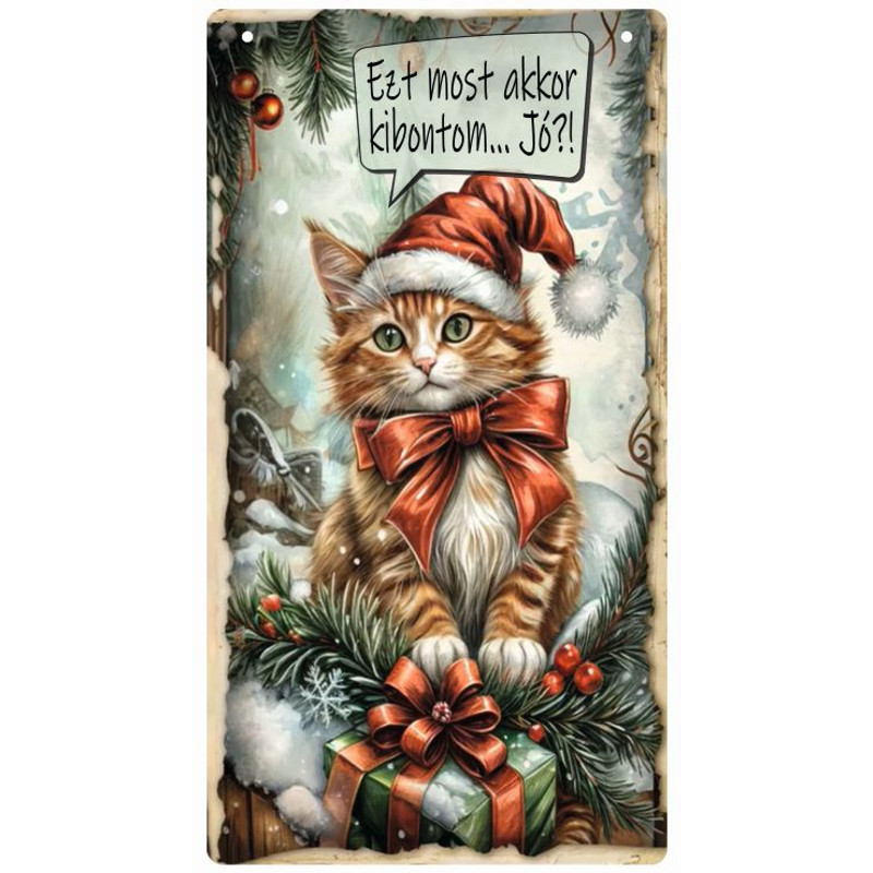Nyomtatott fa tábla - Karácsonyi cicás akasztós tábla