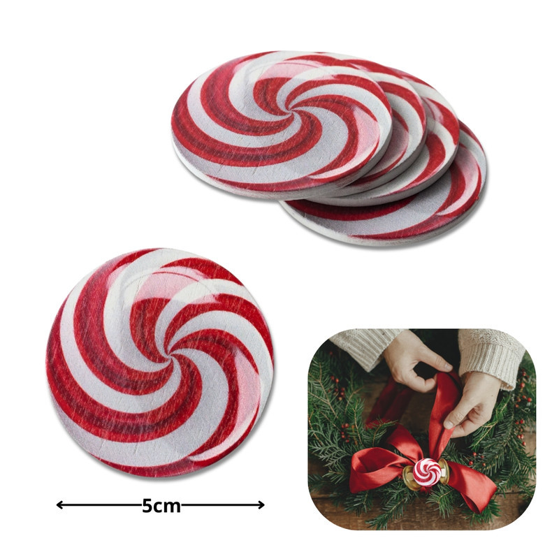Nyomtatott fa tábla  - Karácsonyi cukorka kerek 4db/csomag