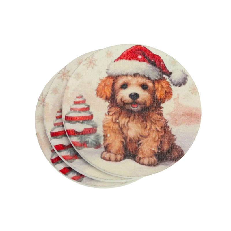 Nyomtatott fa tábla - Karácsonyi mini kutyus 3db/csomag