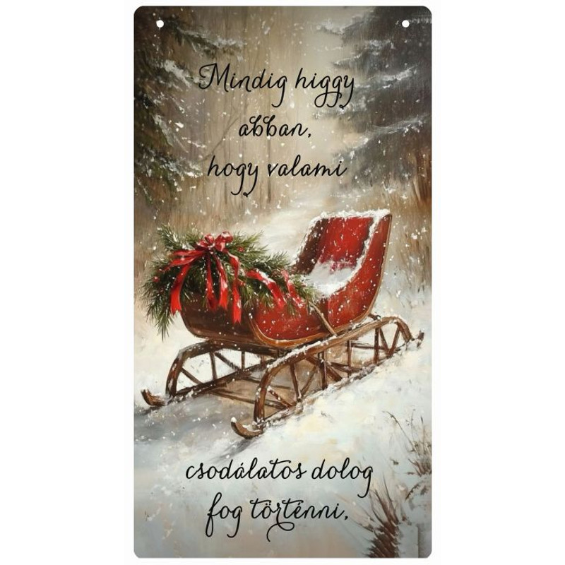 Függőleges karácsonyi tábla, akasztó lyukkal ellátva.