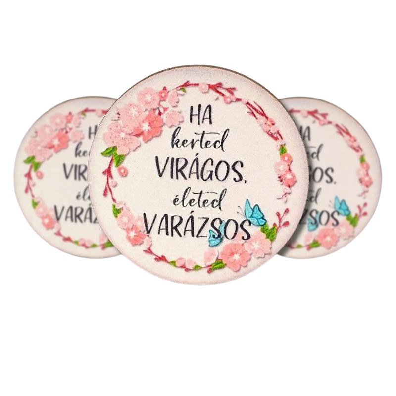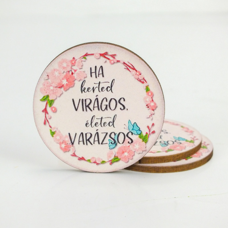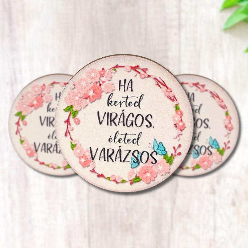 Nyomtatott fa tábla - Kerted virágos - kör 3db/cs