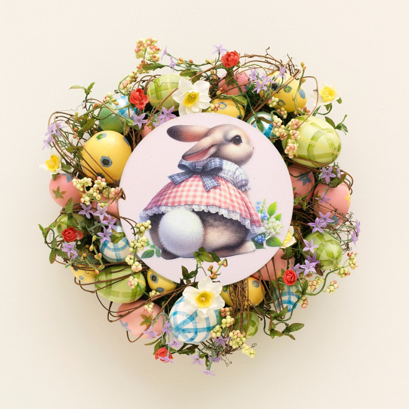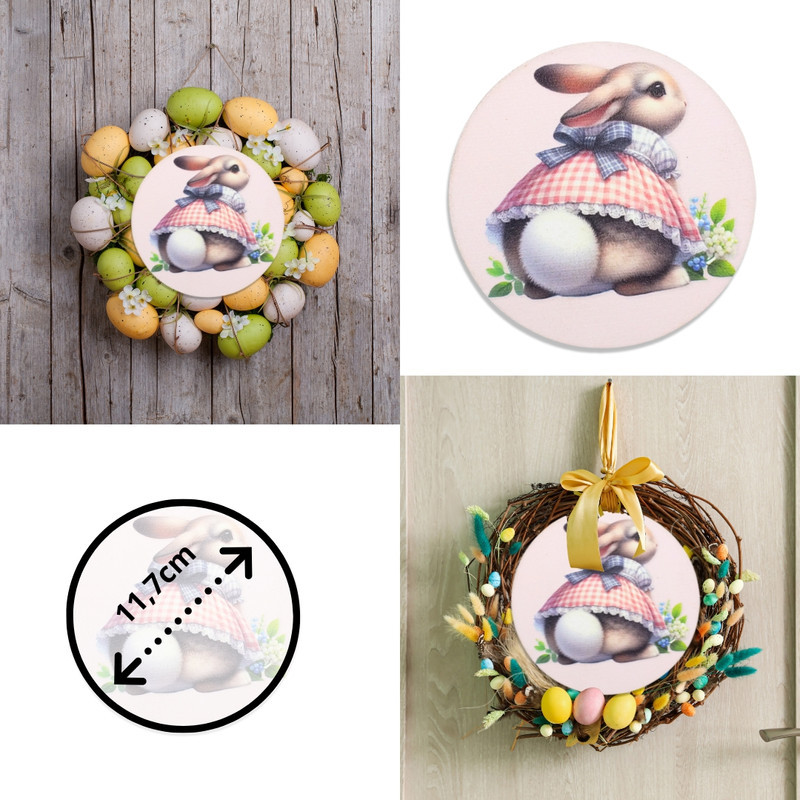 Nyomtatott fa tábla - Kerti nyuszi popi koszorú közép 11,8cm