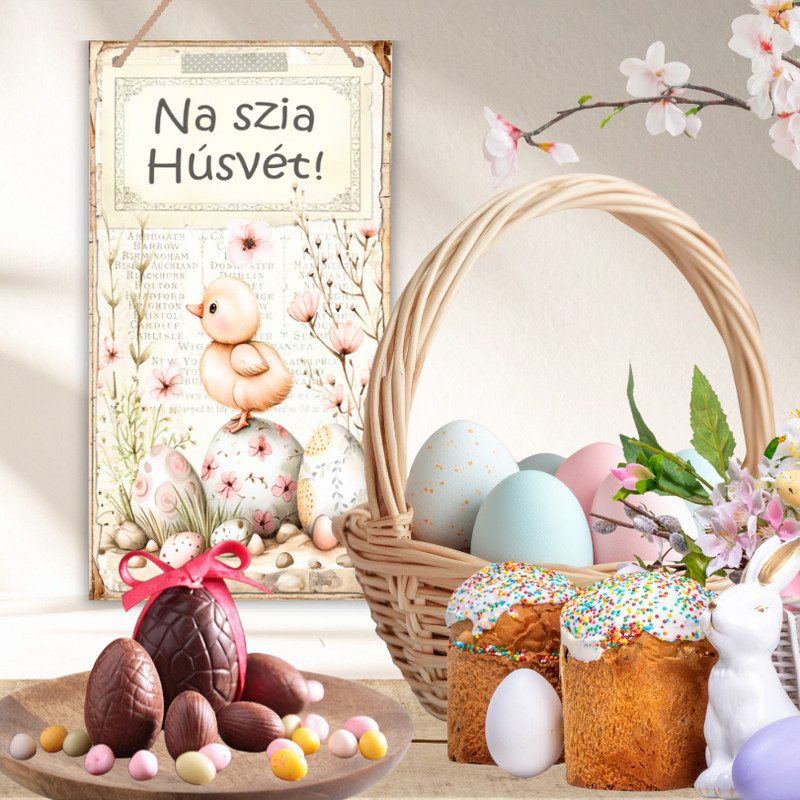 Nyomtatott fa tábla - Na szia Húsvét 13x24,3cm