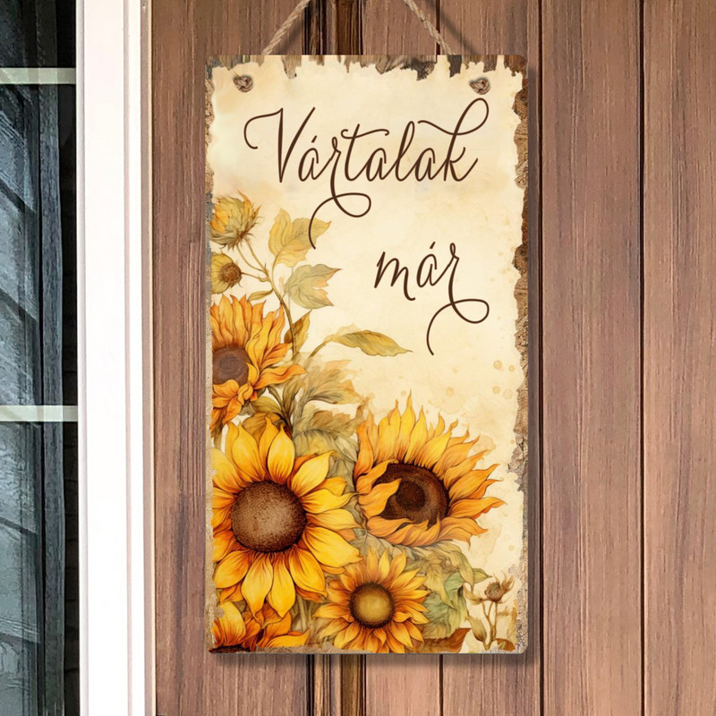 Nyomtatott fa tábla - Napraforgós akasztós tábla 13x24,3cm