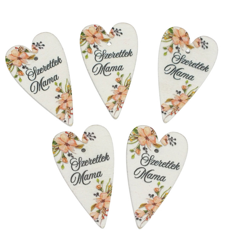Nyomtatott fa tábla -Szeretlek mama szív 6cm 5db