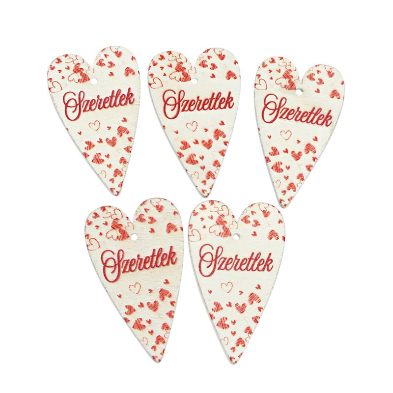 Nyomtatott fa tábla - Szeretlek szív 6cm fehér 5db