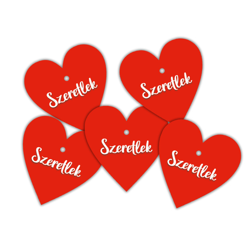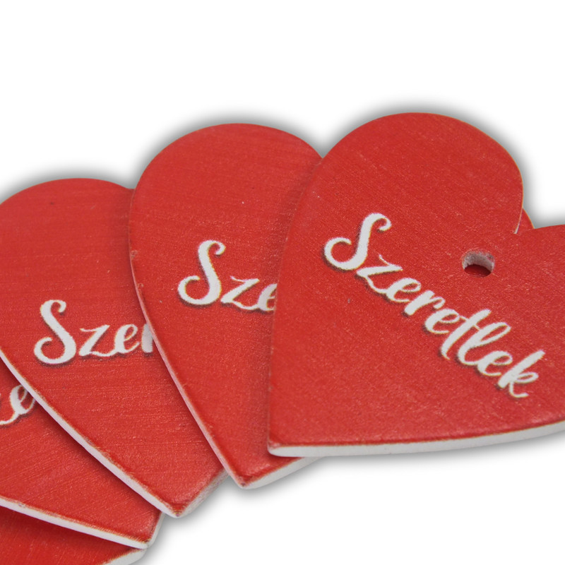 Nyomtatott fa tábla - Szeretlek szív piros 4cm 5db