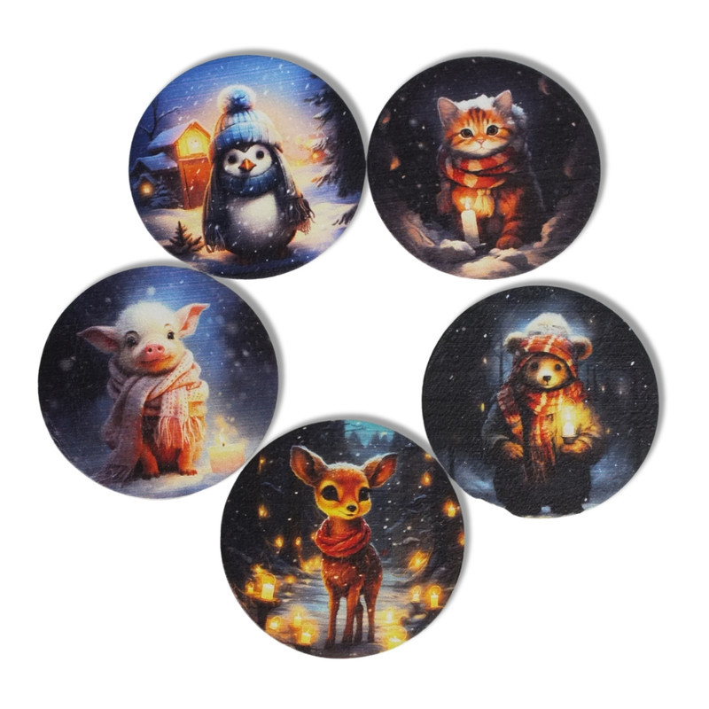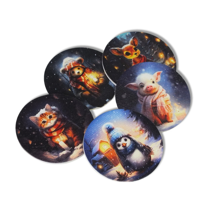 Nyomtatott fa tábla - Téli kisállatok 5db/csomag