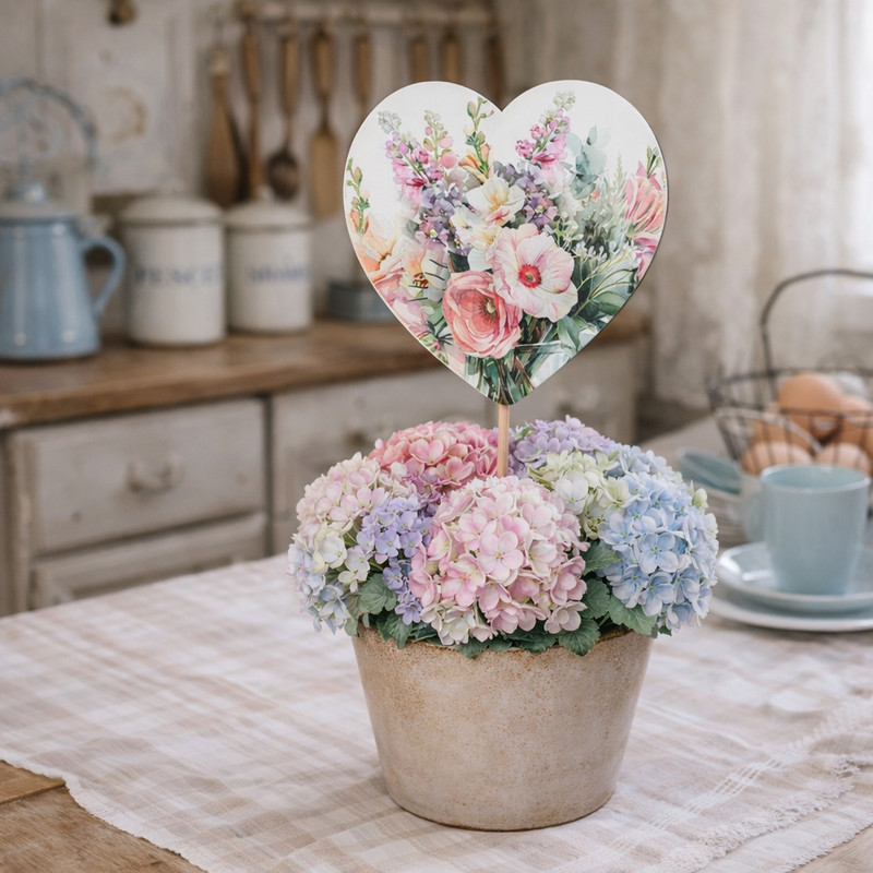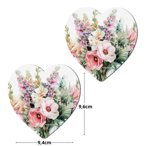 Nyomtatott fa tábla - Vadvirágos szív 9,6cm 2db/csomag