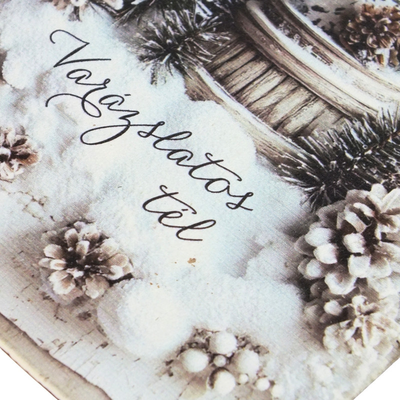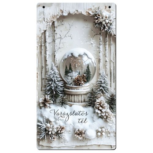 Nyomtatott fa tábla - Vintage fehér téma - hógömb 13x24,3cm